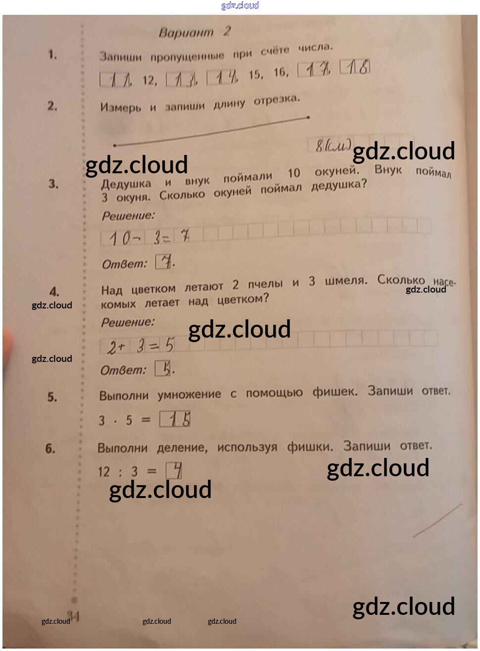Ответ на задание 34 Тетрадь для проверочных работ Математика за 1 (первый) класс Рудницкая Начальная школа XXI века 2020