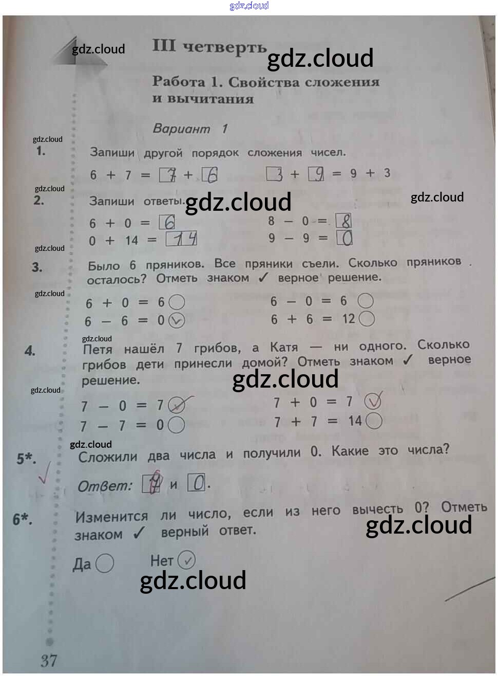 Ответ на задание 37 Тетрадь для проверочных работ Математика за 1 (первый) класс Рудницкая Начальная школа XXI века 2020