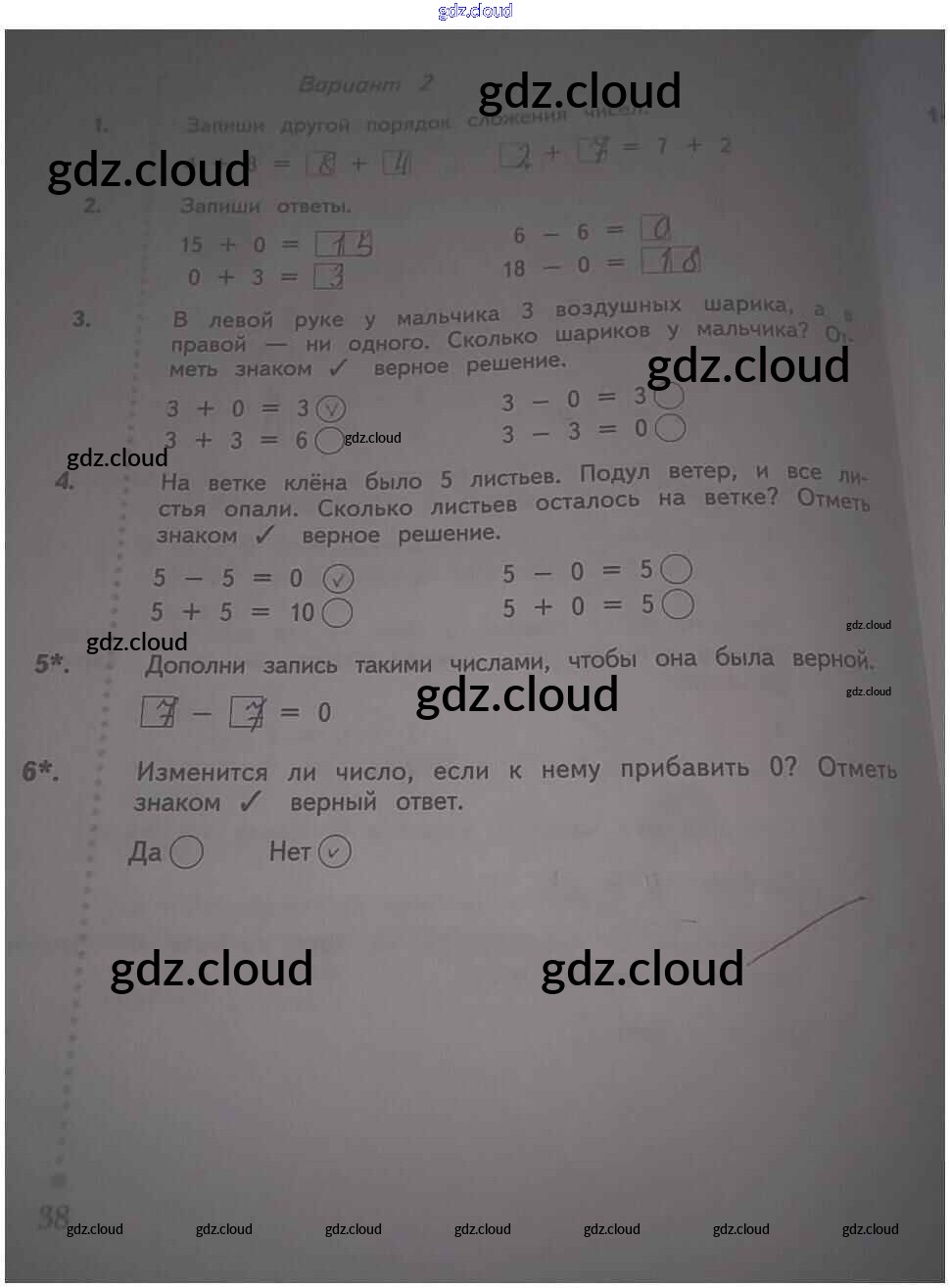Ответ на задание 38 Тетрадь для проверочных работ Математика за 1 (первый) класс Рудницкая Начальная школа XXI века 2020