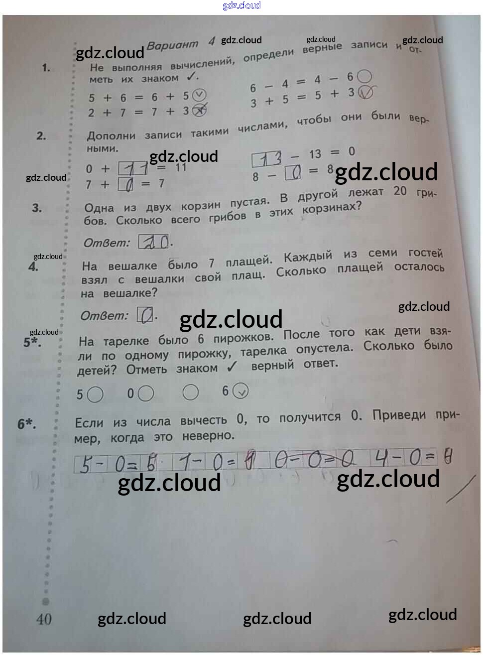 Ответ на задание 40 Тетрадь для проверочных работ Математика за 1 (первый) класс Рудницкая Начальная школа XXI века 2020