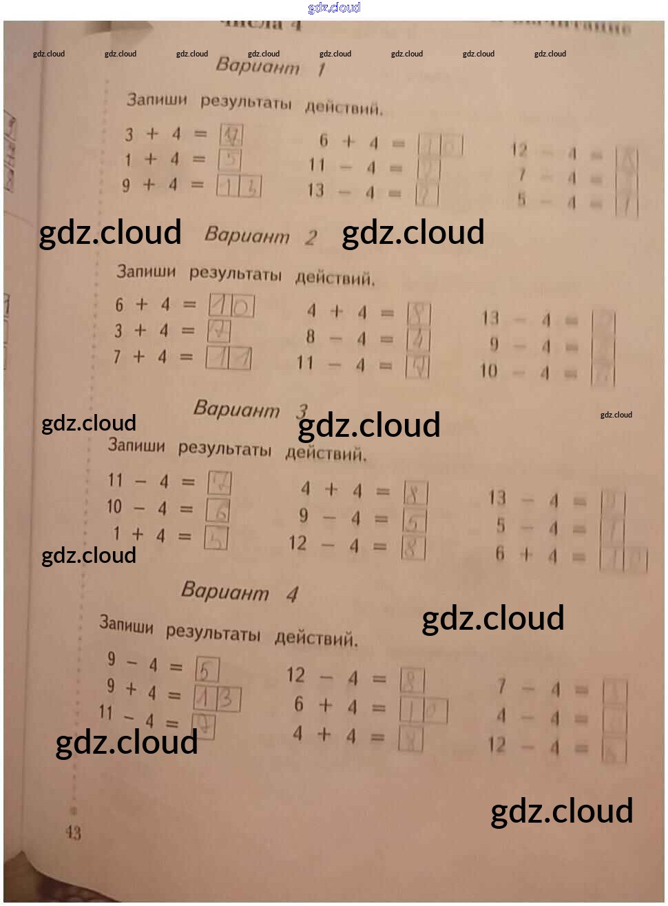 Ответ на задание 43 Тетрадь для проверочных работ Математика за 1 (первый) класс Рудницкая Начальная школа XXI века 2020