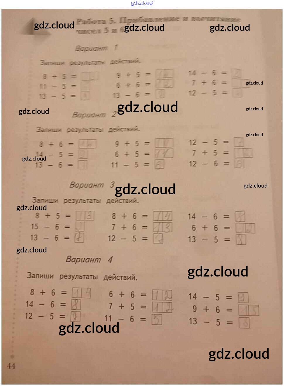 Ответ на задание 44 Тетрадь для проверочных работ Математика за 1 (первый) класс Рудницкая Начальная школа XXI века 2020