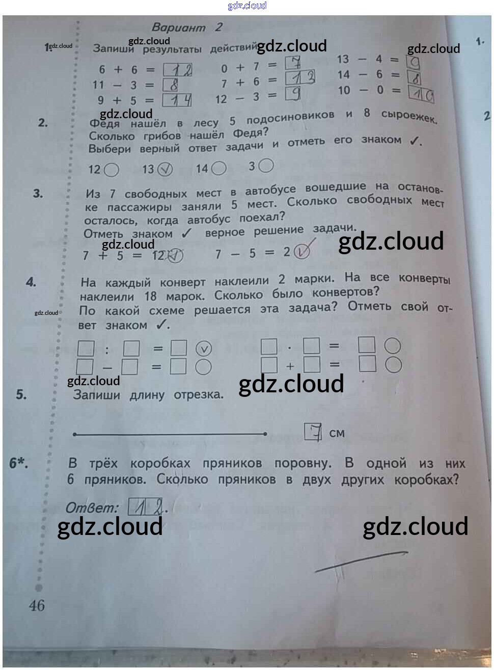 Ответ на задание 46 Тетрадь для проверочных работ Математика за 1 (первый) класс Рудницкая Начальная школа XXI века 2020