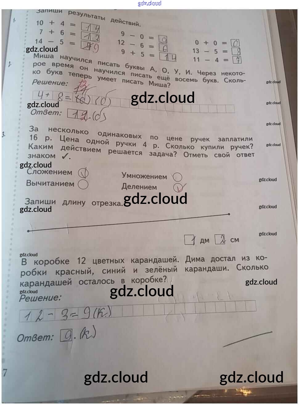 Ответы к части страницам по Математике 1 класс Тетрадь для проверочных работ Рудницкая Начальная школа XXI века Вентана-граф