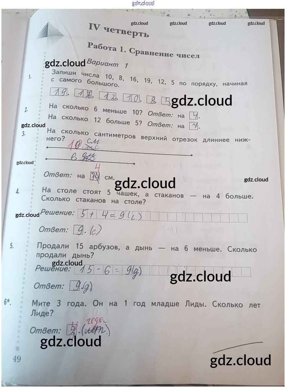 Ответ на задание 49 Тетрадь для проверочных работ Математика за 1 (первый) класс Рудницкая Начальная школа XXI века 2020