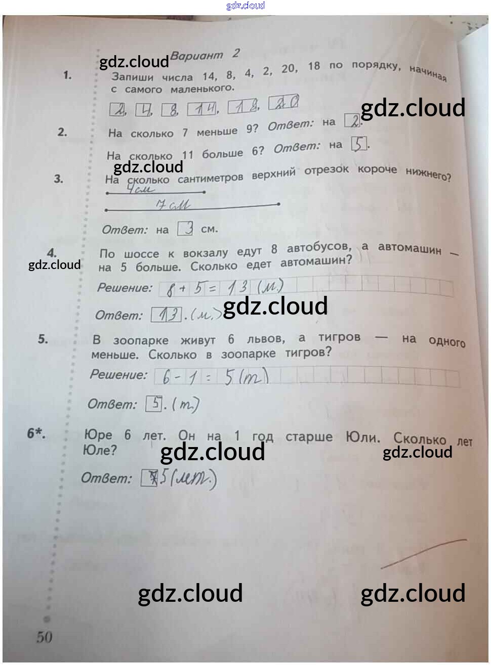 Ответ на задание 50 Тетрадь для проверочных работ Математика за 1 (первый) класс Рудницкая Начальная школа XXI века 2020
