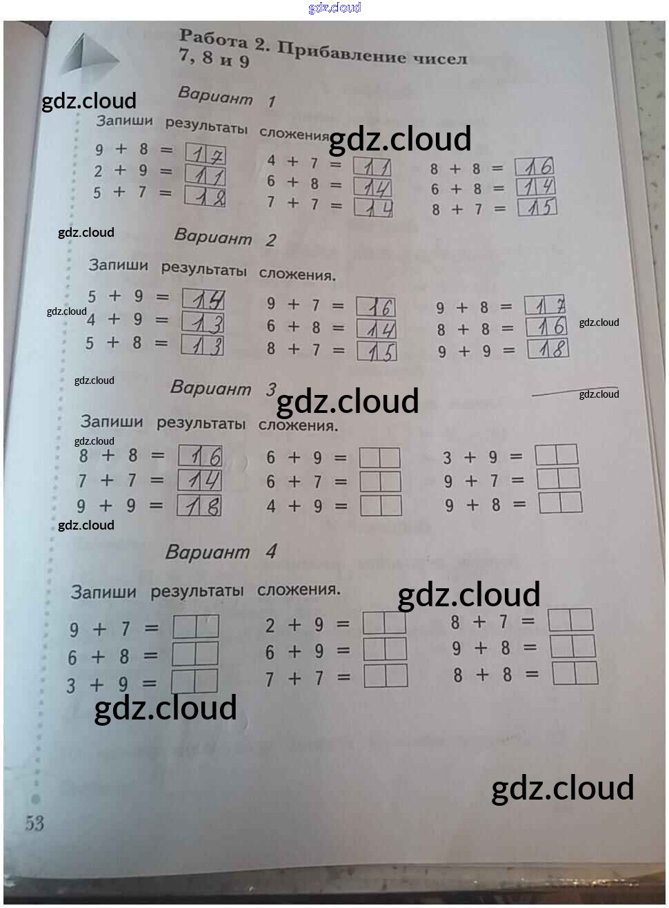 Ответ на задание 53 Тетрадь для проверочных работ Математика за 1 (первый) класс Рудницкая Начальная школа XXI века 2020