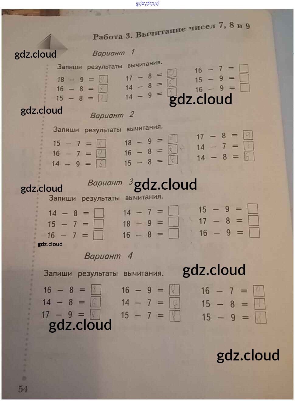Ответ на задание 54 Тетрадь для проверочных работ Математика за 1 (первый) класс Рудницкая Начальная школа XXI века 2020
