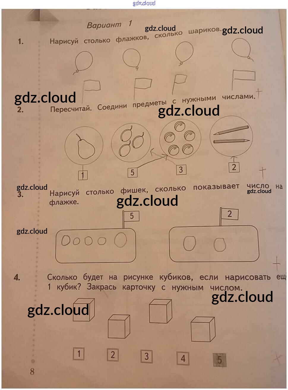 Ответ на задание 8 Тетрадь для проверочных работ Математика за 1 (первый) класс Рудницкая Начальная школа XXI века 2020