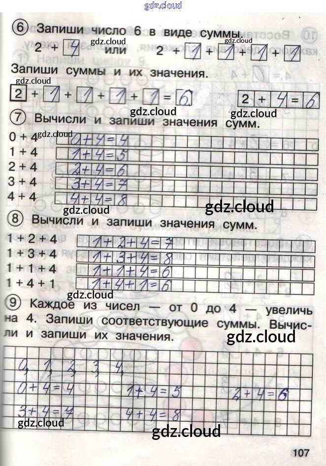Ответ на задание 107 Тетрадь для самостоятельной работы Математика за 1 (первый) класс Захарова, Юдина Перспективная начальная школа 2016 Часть 1, 2