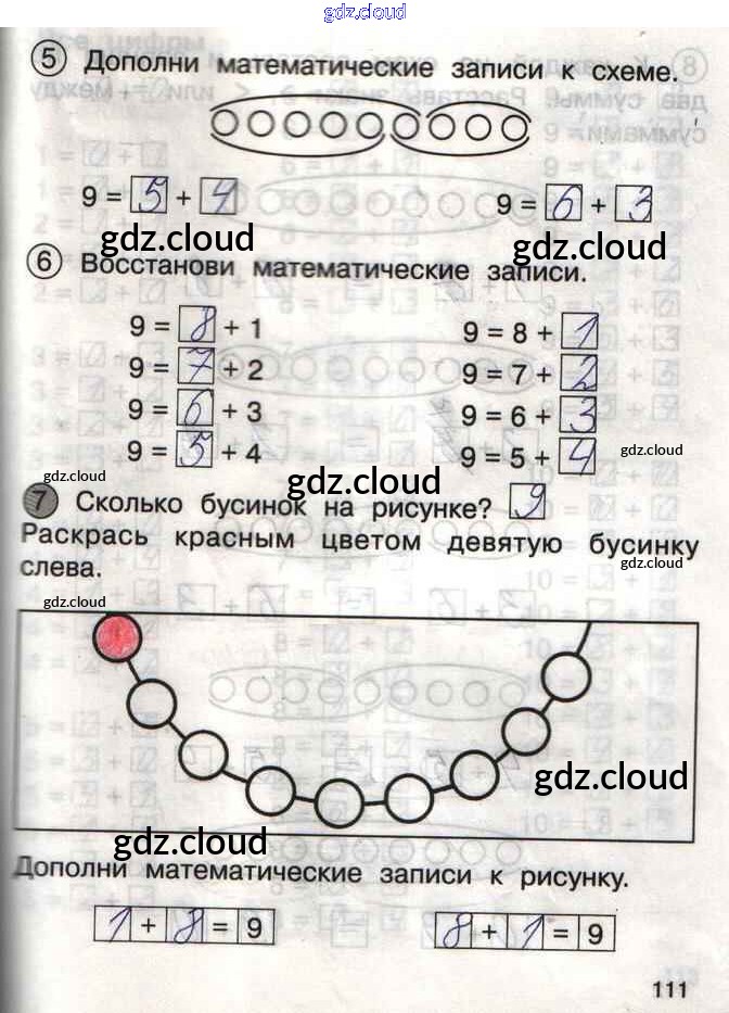 Ответ на задание 111 Тетрадь для самостоятельной работы Математика за 1 (первый) класс Захарова, Юдина Перспективная начальная школа 2016 Часть 1, 2