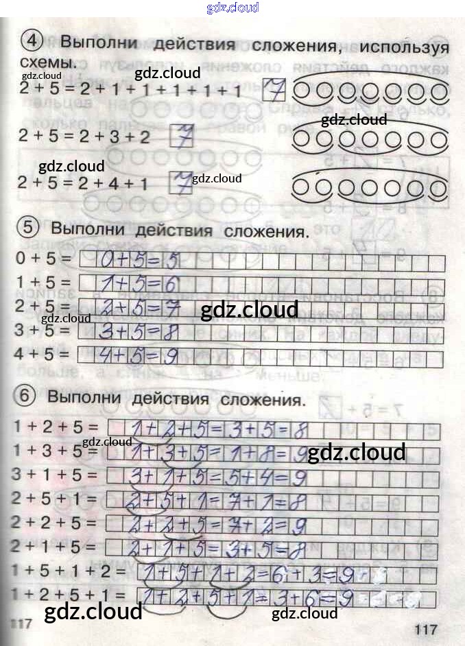 Ответ на задание 117 Тетрадь для самостоятельной работы Математика за 1 (первый) класс Захарова, Юдина Перспективная начальная школа 2016 Часть 1, 2