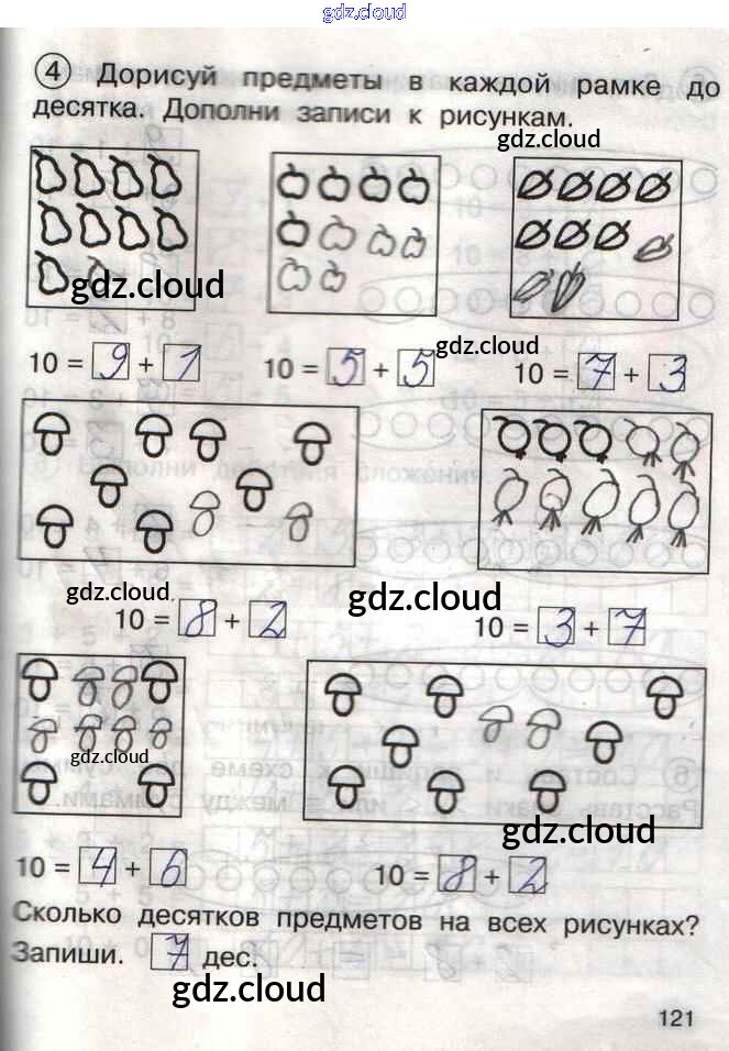 Ответ на задание 121 Тетрадь для самостоятельной работы Математика за 1 (первый) класс Захарова, Юдина Перспективная начальная школа 2016 Часть 1, 2