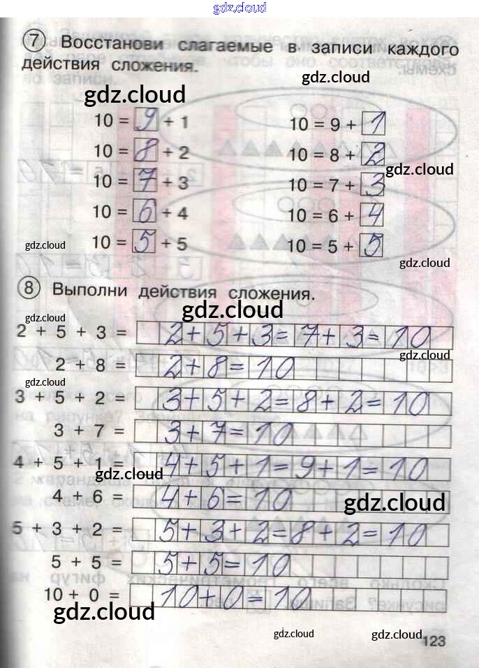 Ответ на задание 123 Тетрадь для самостоятельной работы Математика за 1 (первый) класс Захарова, Юдина Перспективная начальная школа 2016 Часть 1, 2