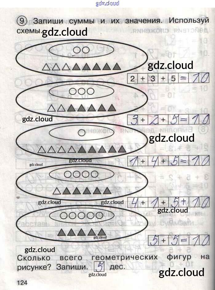 Ответ на задание 124 Тетрадь для самостоятельной работы Математика за 1 (первый) класс Захарова, Юдина Перспективная начальная школа 2016 Часть 1, 2