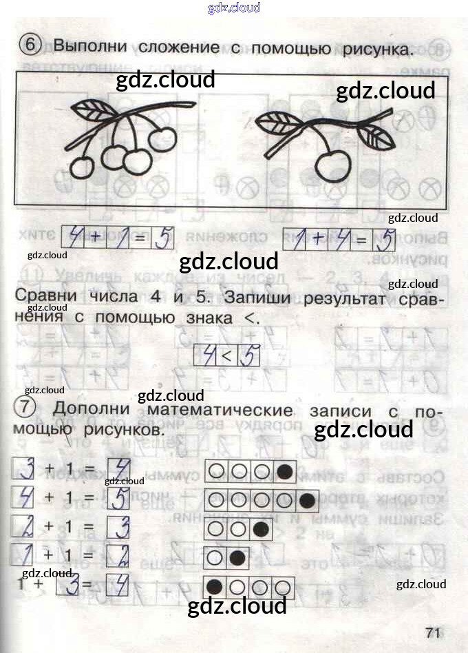Ответ на задание 71 Тетрадь для самостоятельной работы Математика за 1 (первый) класс Захарова, Юдина Перспективная начальная школа 2016 Часть 1, 2