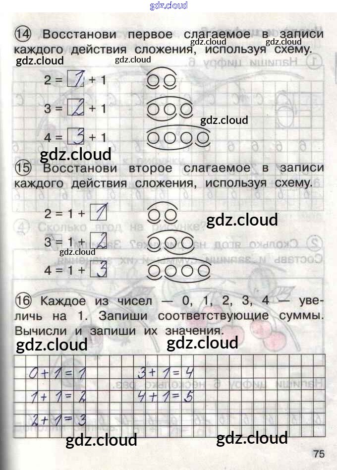 Ответ на задание 75 Тетрадь для самостоятельной работы Математика за 1 (первый) класс Захарова, Юдина Перспективная начальная школа 2016 Часть 1, 2
