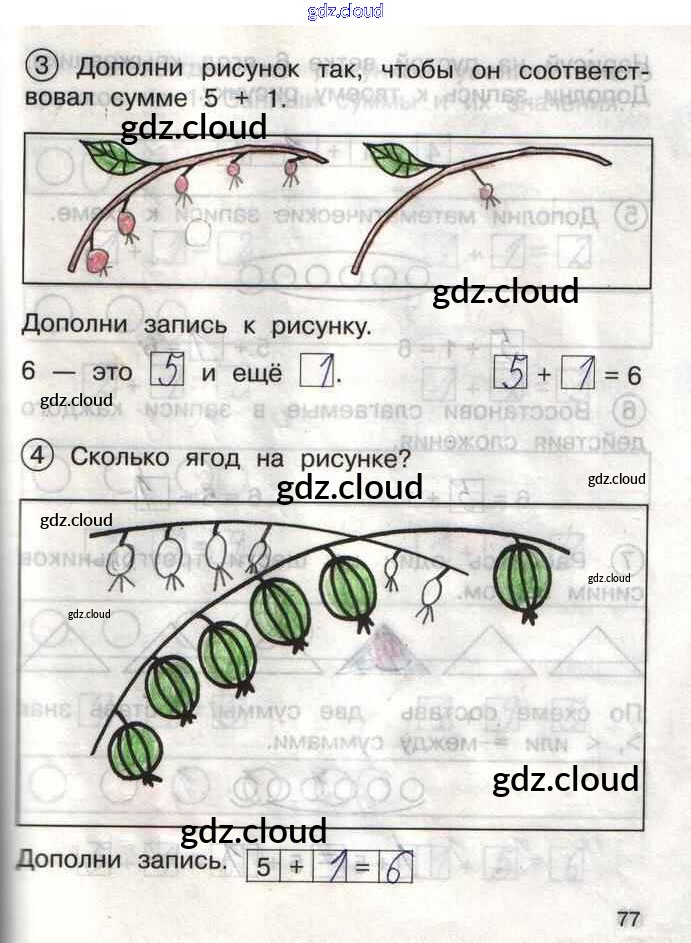 Ответ на задание 77 Тетрадь для самостоятельной работы Математика за 1 (первый) класс Захарова, Юдина Перспективная начальная школа 2016 Часть 1, 2