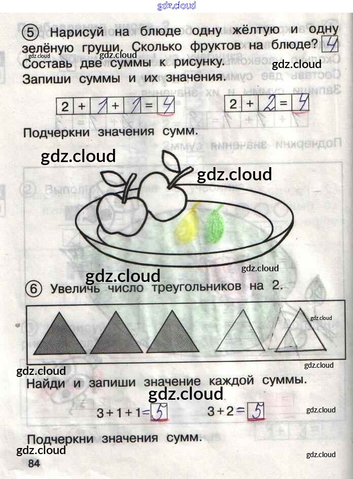 Ответ на задание 84 Тетрадь для самостоятельной работы Математика за 1 (первый) класс Захарова, Юдина Перспективная начальная школа 2016 Часть 1, 2