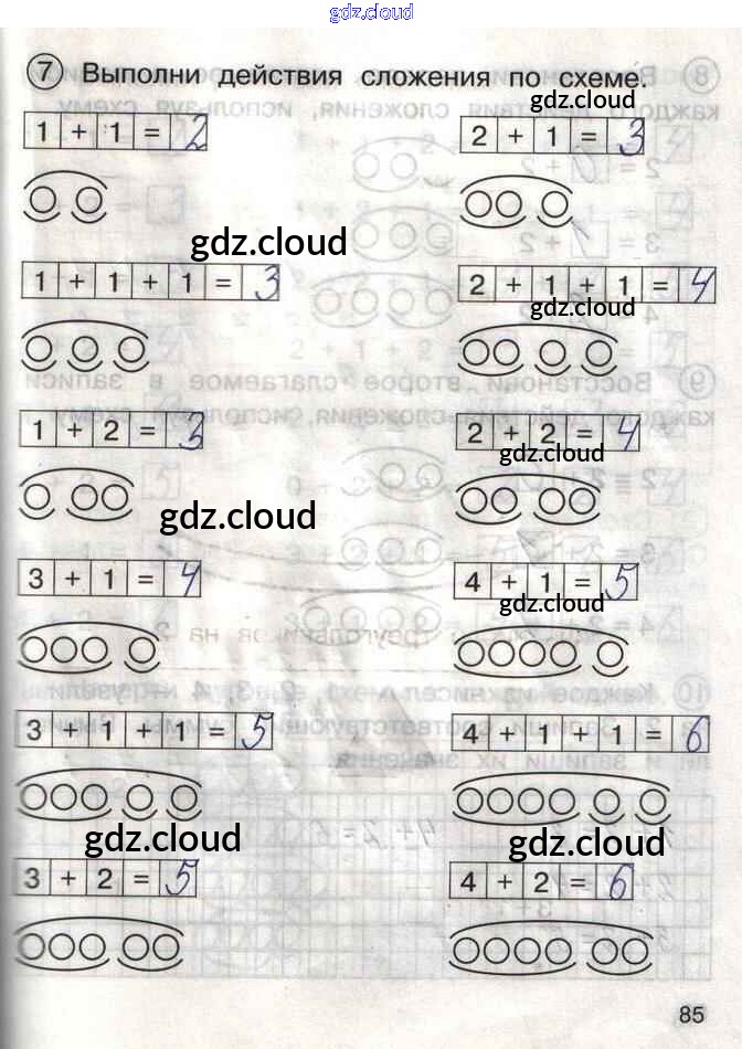 Ответ на задание 85 Тетрадь для самостоятельной работы Математика за 1 (первый) класс Захарова, Юдина Перспективная начальная школа 2016 Часть 1, 2