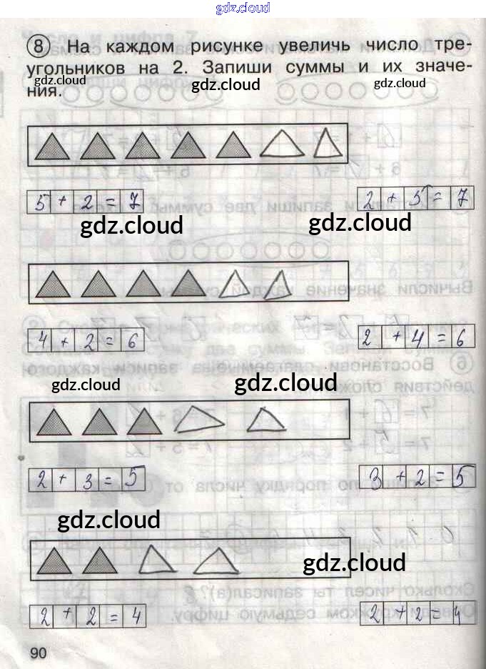 Ответ на задание 90 Тетрадь для самостоятельной работы Математика за 1 (первый) класс Захарова, Юдина Перспективная начальная школа 2016 Часть 1, 2