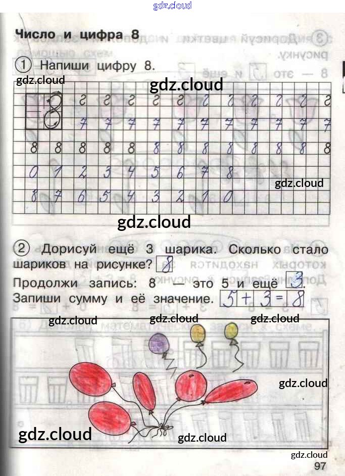 Ответ на задание 97 Тетрадь для самостоятельной работы Математика за 1 (первый) класс Захарова, Юдина Перспективная начальная школа 2016 Часть 1, 2