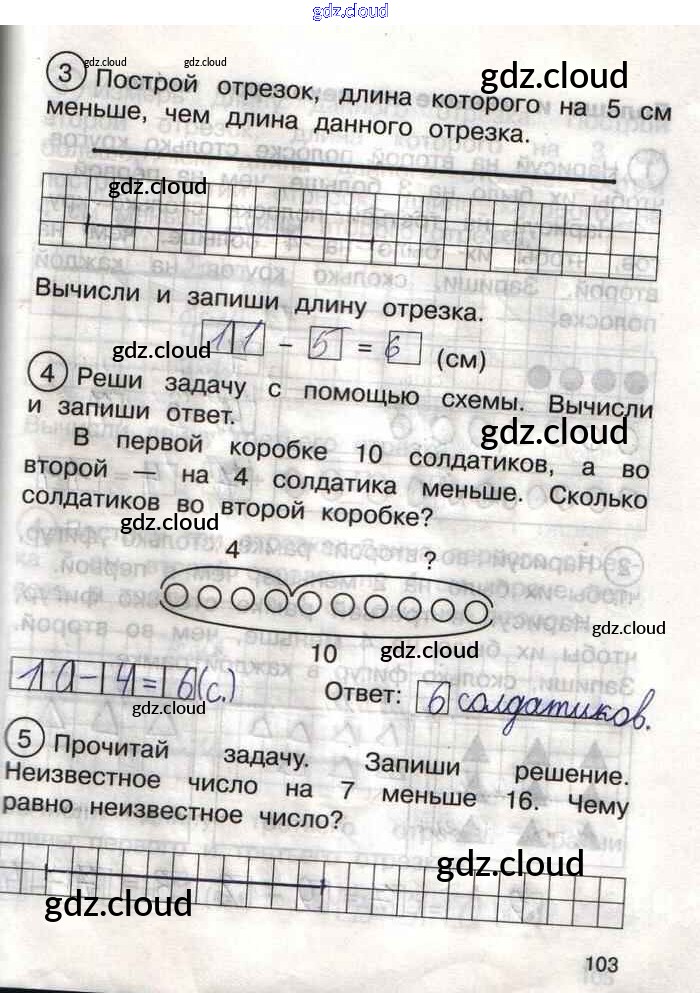 Ответ на задание 103 Тетрадь для самостоятельной работы Математика за 1 (первый) класс Захарова, Юдина Перспективная начальная школа 2016 Часть 1, 2