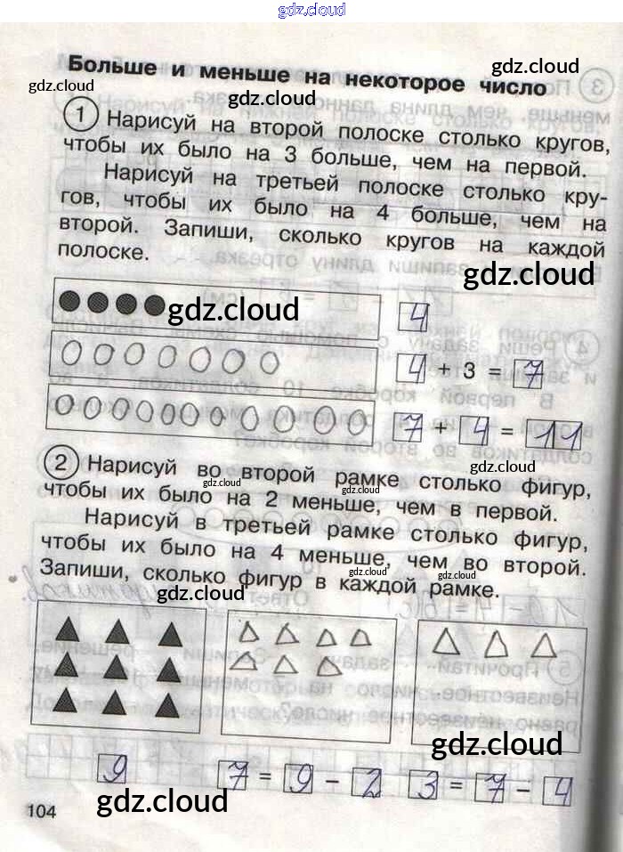 Ответ на задание 104 Тетрадь для самостоятельной работы Математика за 1 (первый) класс Захарова, Юдина Перспективная начальная школа 2016 Часть 1, 2