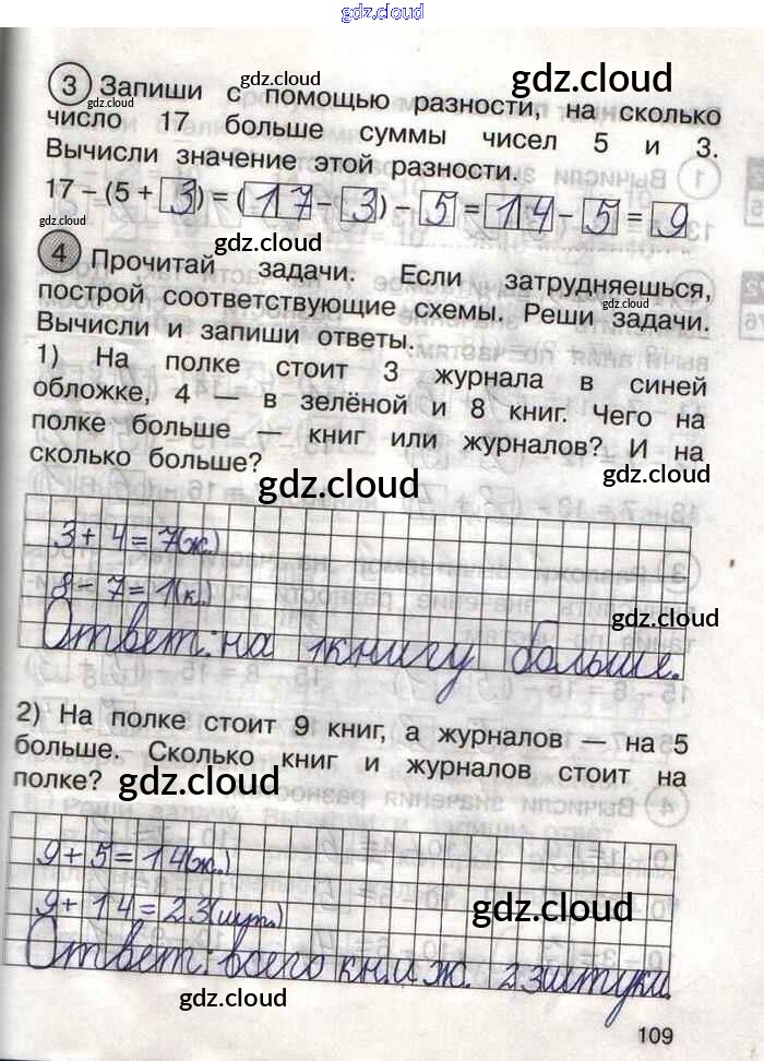 Ответ на задание 109 Тетрадь для самостоятельной работы Математика за 1 (первый) класс Захарова, Юдина Перспективная начальная школа 2016 Часть 1, 2