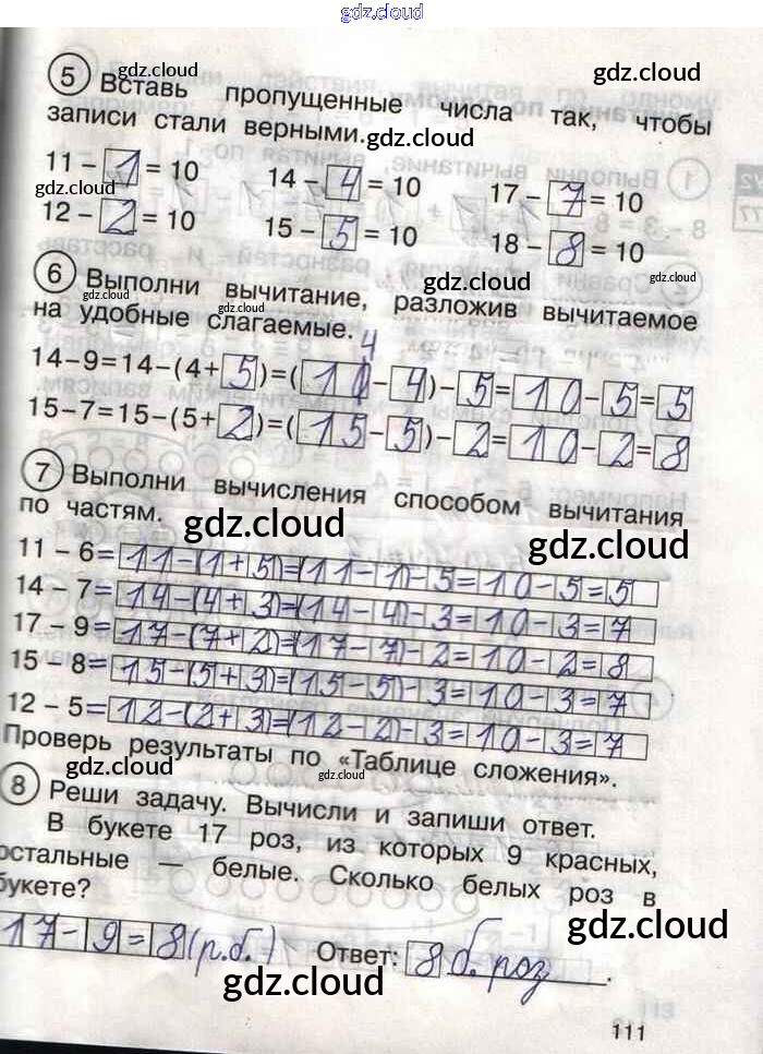 Ответ на задание 111 Тетрадь для самостоятельной работы Математика за 1 (первый) класс Захарова, Юдина Перспективная начальная школа 2016 Часть 1, 2