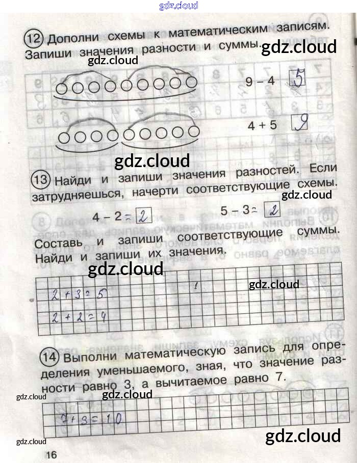 Ответ на задание 16 Тетрадь для самостоятельной работы Математика за 1 (первый) класс Захарова, Юдина Перспективная начальная школа 2016 Часть 1, 2