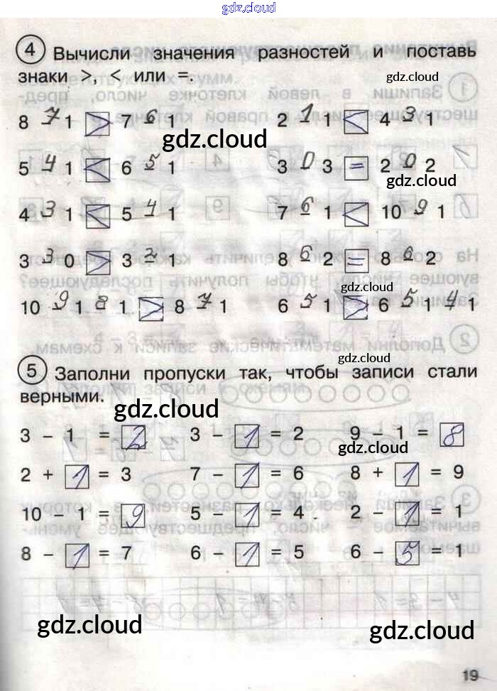 Ответ на задание 19 Тетрадь для самостоятельной работы Математика за 1 (первый) класс Захарова, Юдина Перспективная начальная школа 2016 Часть 1, 2