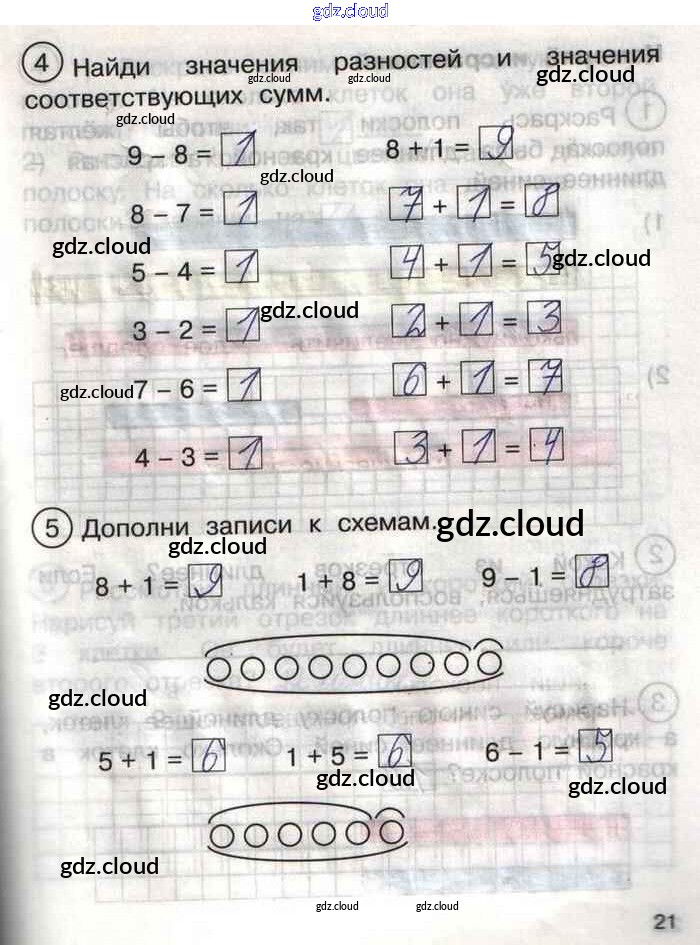 Ответ на задание 21 Тетрадь для самостоятельной работы Математика за 1 (первый) класс Захарова, Юдина Перспективная начальная школа 2016 Часть 1, 2