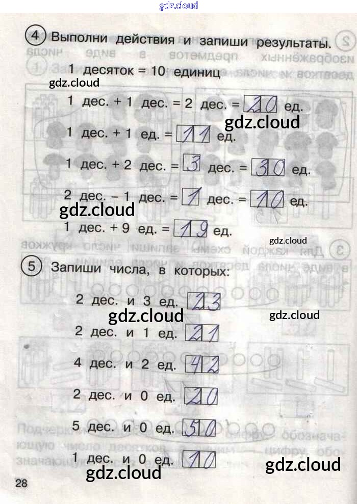 Ответ на задание 28 Тетрадь для самостоятельной работы Математика за 1 (первый) класс Захарова, Юдина Перспективная начальная школа 2016 Часть 1, 2