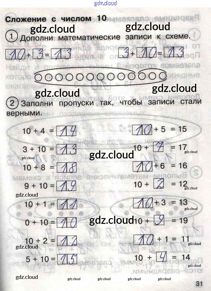 Ответ на задание 31 Тетрадь для самостоятельной работы Математика за 1 (первый) класс Захарова, Юдина Перспективная начальная школа 2016 Часть 1, 2