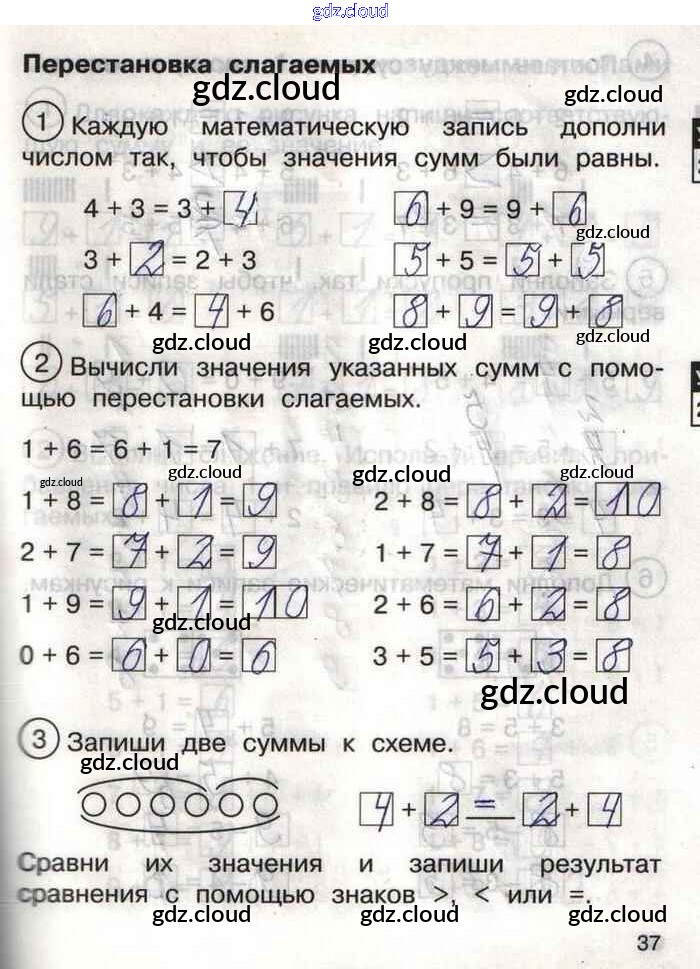Ответ на задание 37 Тетрадь для самостоятельной работы Математика за 1 (первый) класс Захарова, Юдина Перспективная начальная школа 2016 Часть 1, 2