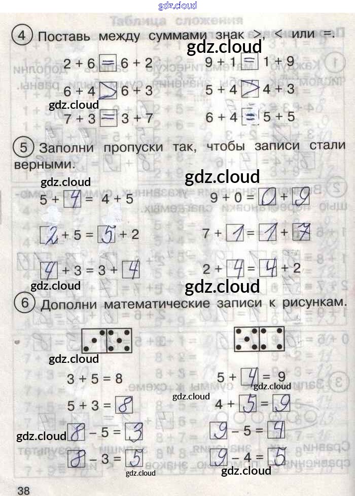 Ответ на задание 38 Тетрадь для самостоятельной работы Математика за 1 (первый) класс Захарова, Юдина Перспективная начальная школа 2016 Часть 1, 2