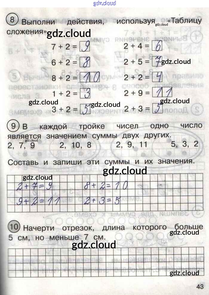 Ответ на задание 43 Тетрадь для самостоятельной работы Математика за 1 (первый) класс Захарова, Юдина Перспективная начальная школа 2016 Часть 1, 2