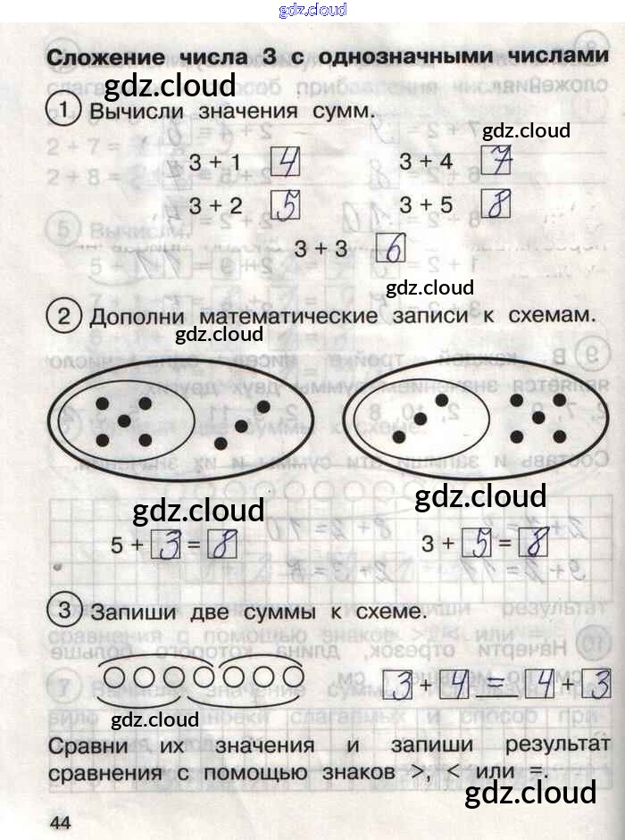 Ответ на задание 44 Тетрадь для самостоятельной работы Математика за 1 (первый) класс Захарова, Юдина Перспективная начальная школа 2016 Часть 1, 2