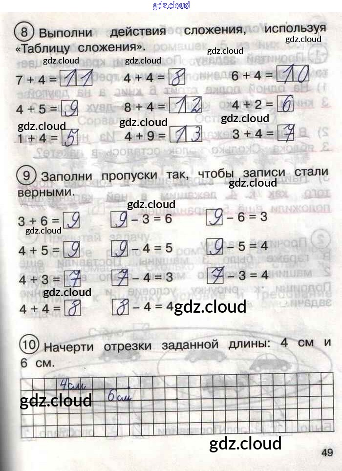 Ответ на задание 49 Тетрадь для самостоятельной работы Математика за 1 (первый) класс Захарова, Юдина Перспективная начальная школа 2016 Часть 1, 2