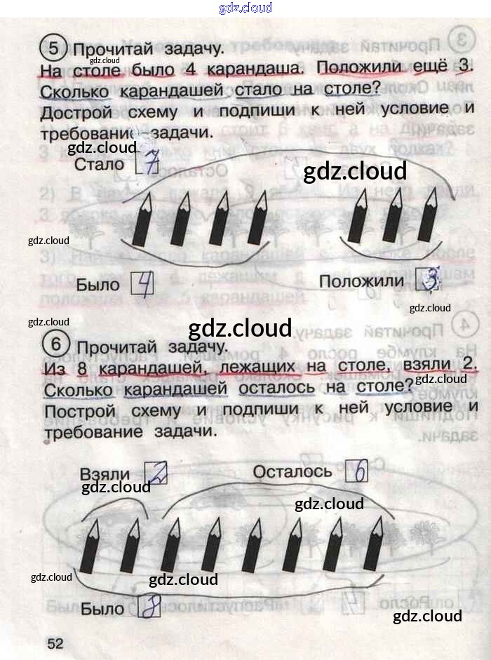Ответ на задание 52 Тетрадь для самостоятельной работы Математика за 1 (первый) класс Захарова, Юдина Перспективная начальная школа 2016 Часть 1, 2