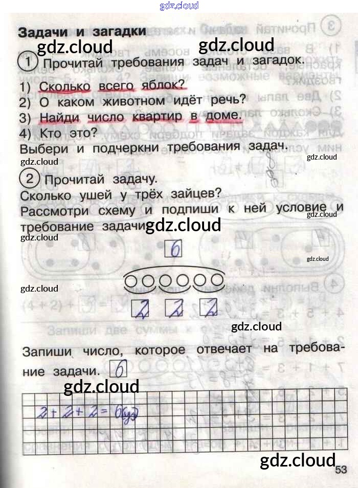 Ответ на задание 53 Тетрадь для самостоятельной работы Математика за 1 (первый) класс Захарова, Юдина Перспективная начальная школа 2016 Часть 1, 2
