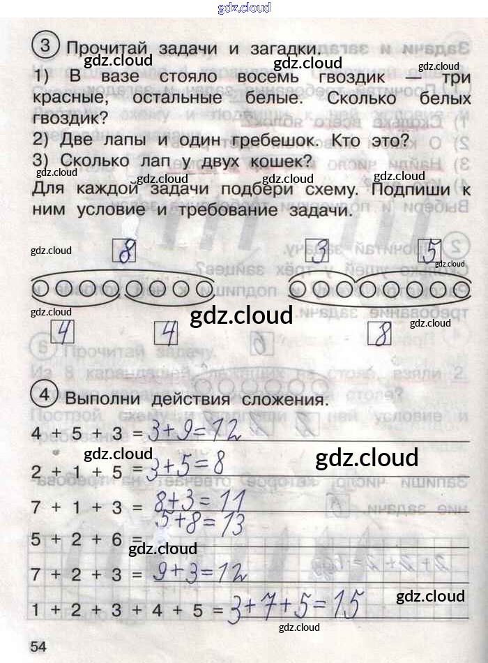 Ответ на задание 54 Тетрадь для самостоятельной работы Математика за 1 (первый) класс Захарова, Юдина Перспективная начальная школа 2016 Часть 1, 2