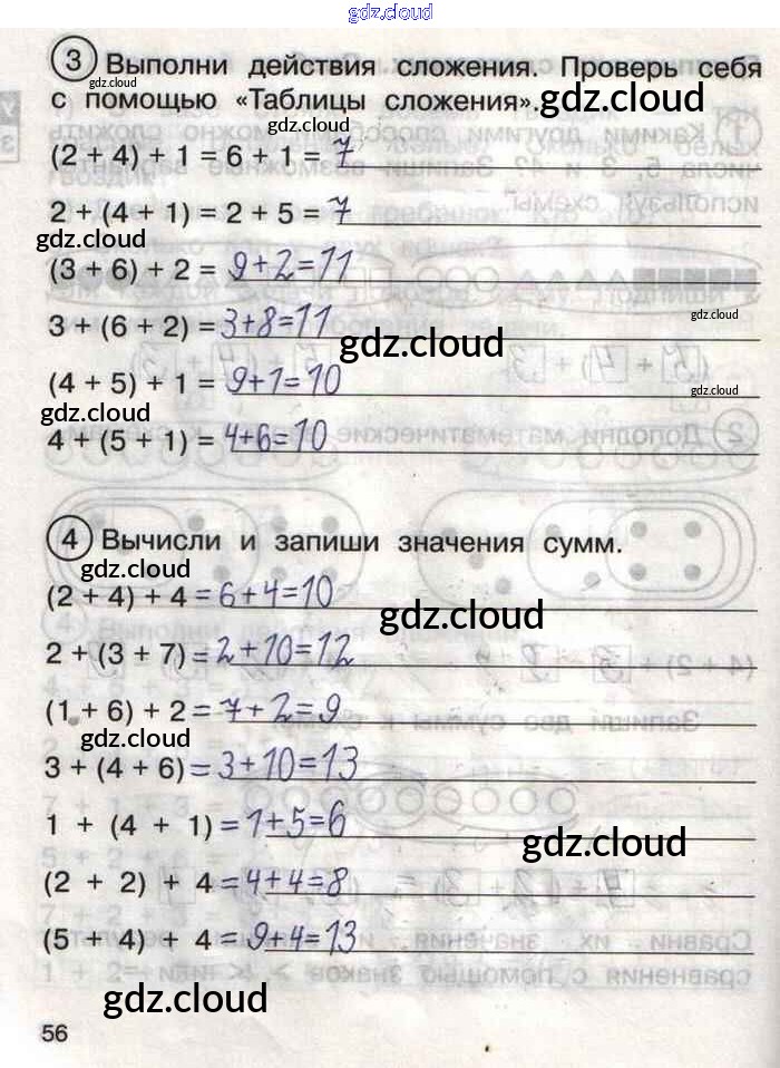 Ответ на задание 56 Тетрадь для самостоятельной работы Математика за 1 (первый) класс Захарова, Юдина Перспективная начальная школа 2016 Часть 1, 2