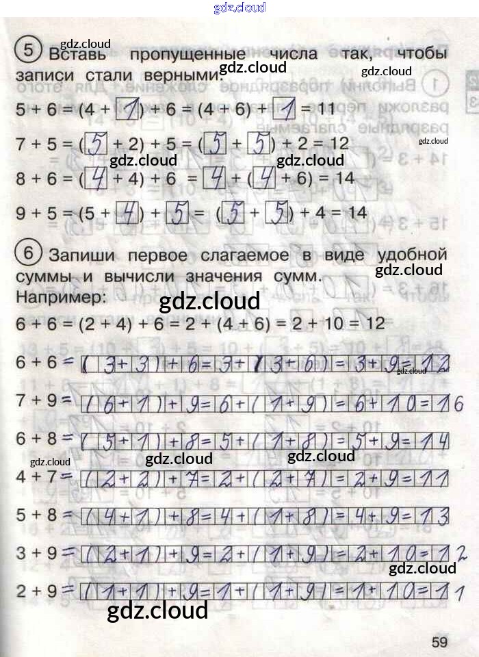 Ответ на задание 59 Тетрадь для самостоятельной работы Математика за 1 (первый) класс Захарова, Юдина Перспективная начальная школа 2016 Часть 1, 2