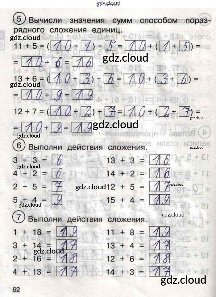 Ответ на задание 62 Тетрадь для самостоятельной работы Математика за 1 (первый) класс Захарова, Юдина Перспективная начальная школа 2016 Часть 1, 2