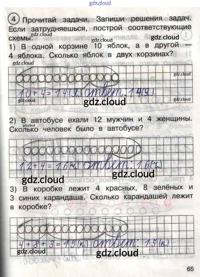 Ответ на задание 65 Тетрадь для самостоятельной работы Математика за 1 (первый) класс Захарова, Юдина Перспективная начальная школа 2016 Часть 1, 2