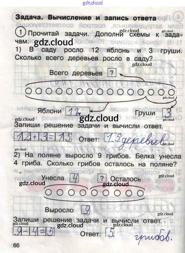 Ответ на задание 66 Тетрадь для самостоятельной работы Математика за 1 (первый) класс Захарова, Юдина Перспективная начальная школа 2016 Часть 1, 2