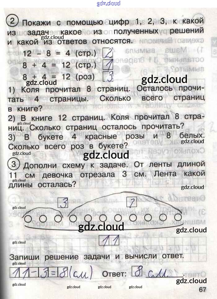 Ответ на задание 67 Тетрадь для самостоятельной работы Математика за 1 (первый) класс Захарова, Юдина Перспективная начальная школа 2016 Часть 1, 2