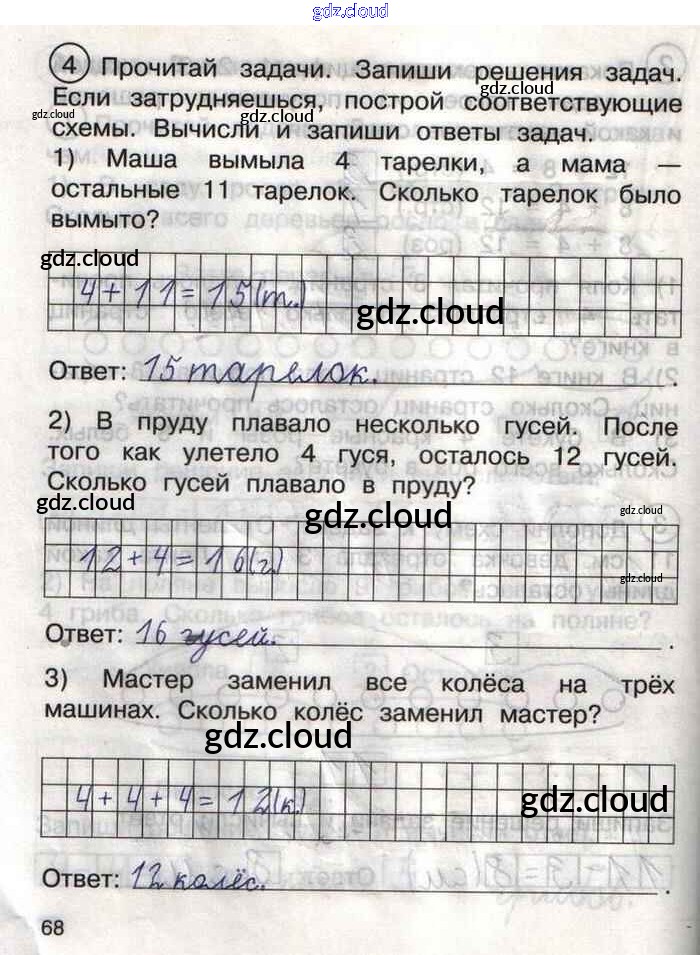 Ответ на задание 68 Тетрадь для самостоятельной работы Математика за 1 (первый) класс Захарова, Юдина Перспективная начальная школа 2016 Часть 1, 2